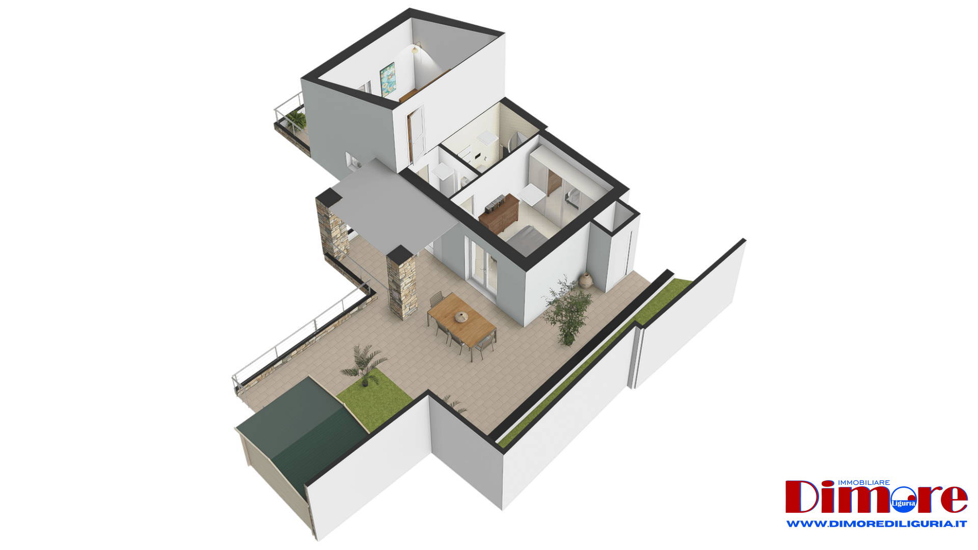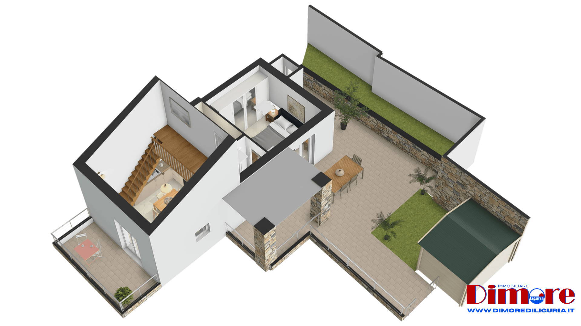 Sulla prima collina di Alassio, in zona Madonna delle Grazie a circa 2 km dal mare, proponiamo in vendita villa a schiera di testa libera su tre lati, inserita nel complesso residenziale “Residenza Le Palme”, dotato di una bella piscina condominiale.