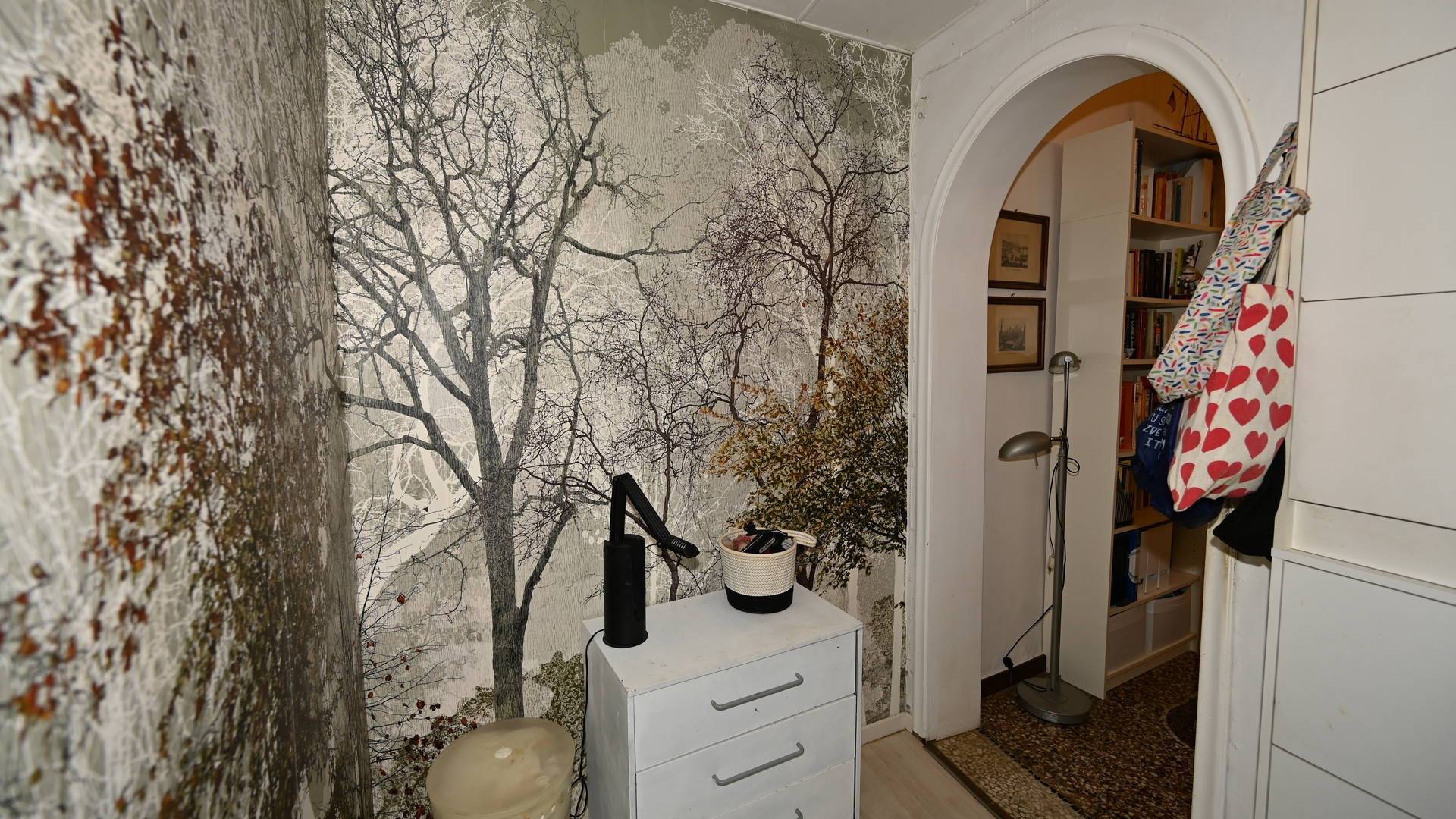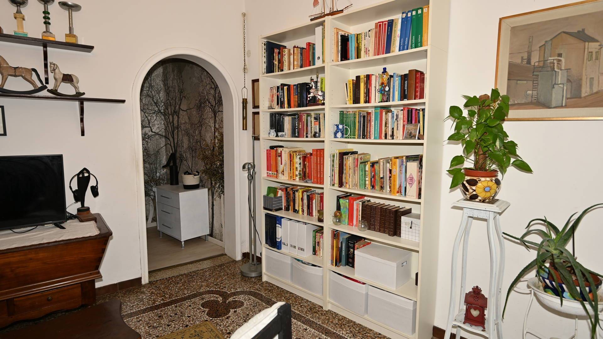 La parte centrale dell’abitazione è stata ottimizzata con armadiature su misura ed una cabina, realizzate con strutture mobili in legno che, all’occorrenza, possono essere rimosse per ripristinare gli spazi originari. Completa la proprietà un pratico ripostiglio.