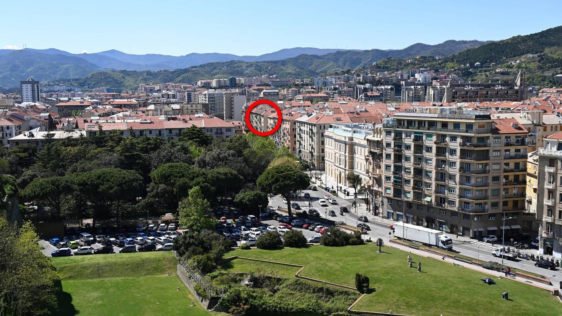 Appartamento di 150 mq al quarto piano senza ascensore. In posizione angolare con vista aperta verso il mare e verso il Priamar. Composizione: vano di ingresso utilizzato come sala TV - cucina collegata alla veranda con zona pranzo separata - bagno con finestra di servizio ed ampio box doccia - tre ampie camere da letto (una attualmente usata come studio) - grande soggiorno angolare - ripostiglio - ulteriore vano cieco utilizzato come dispensa e cabina armadi.