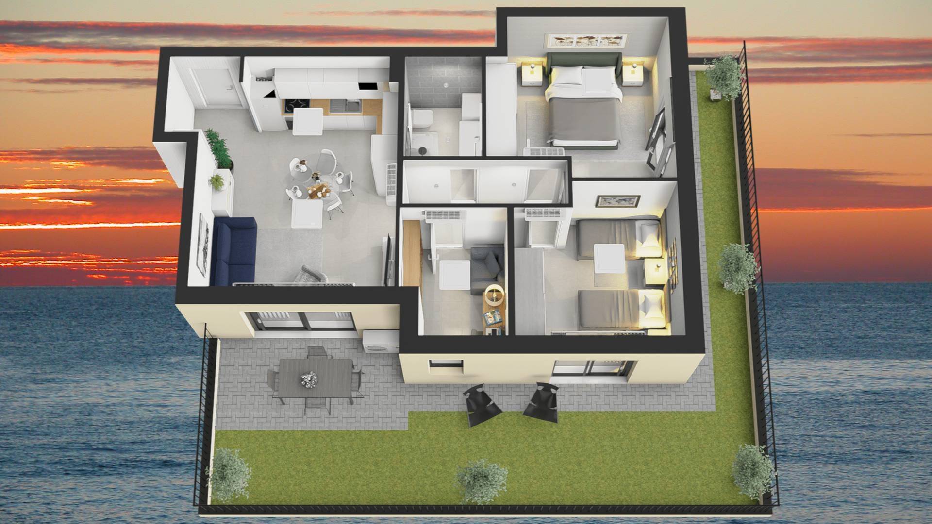 Appartamento Quadrilocale con superficie interna di 78 Mq e giardino privato di 54 Mq – Disponibili posti auto a 16.000 euro — Classe energetica A